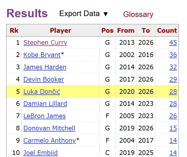 這是東契奇職業(yè)生涯第29次單節(jié)20+!超越利拉德,追平布克,并列歷史第四!