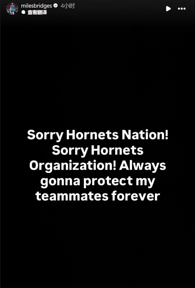 賽后,布里奇斯在INS發(fā)文道:“對不起黃蜂國度!對不起黃蜂隊(duì)!我永遠(yuǎn)都想保護(hù)我的隊(duì)友?!?/p>