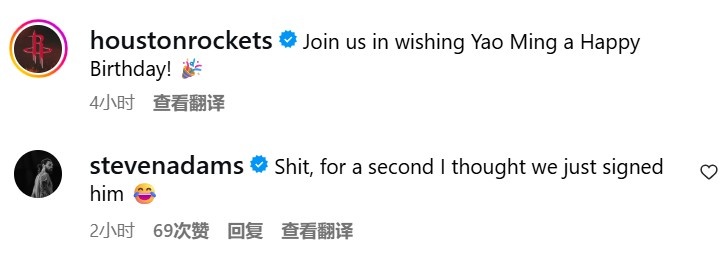 火箭官方祝姚明生日快樂!亞當斯:我剛才還以為我們簽下他了