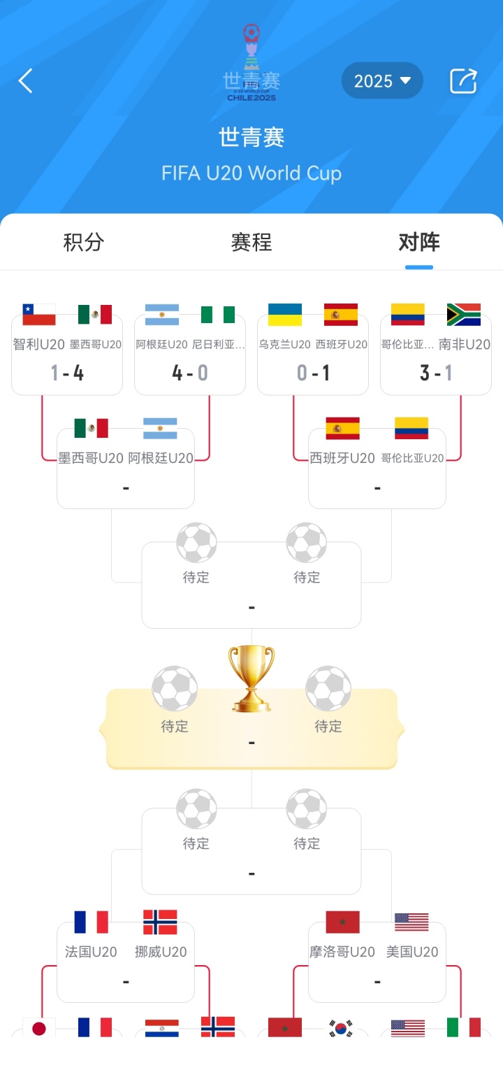 上半?yún)^(qū)墨西哥和阿根廷老熟人相遇,西班牙與哥倫比亞歐美對(duì)決;下半?yún)^(qū)法國(guó)碰上挪威,摩洛哥將對(duì)陣美國(guó)。