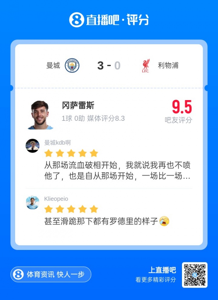 而近期,在羅德里傷情再度反復(fù),無(wú)法出戰(zhàn)的情況下,尼科似乎在曼城已經(jīng)漸入佳境,逐漸兌現(xiàn)著自己的身價(jià)。